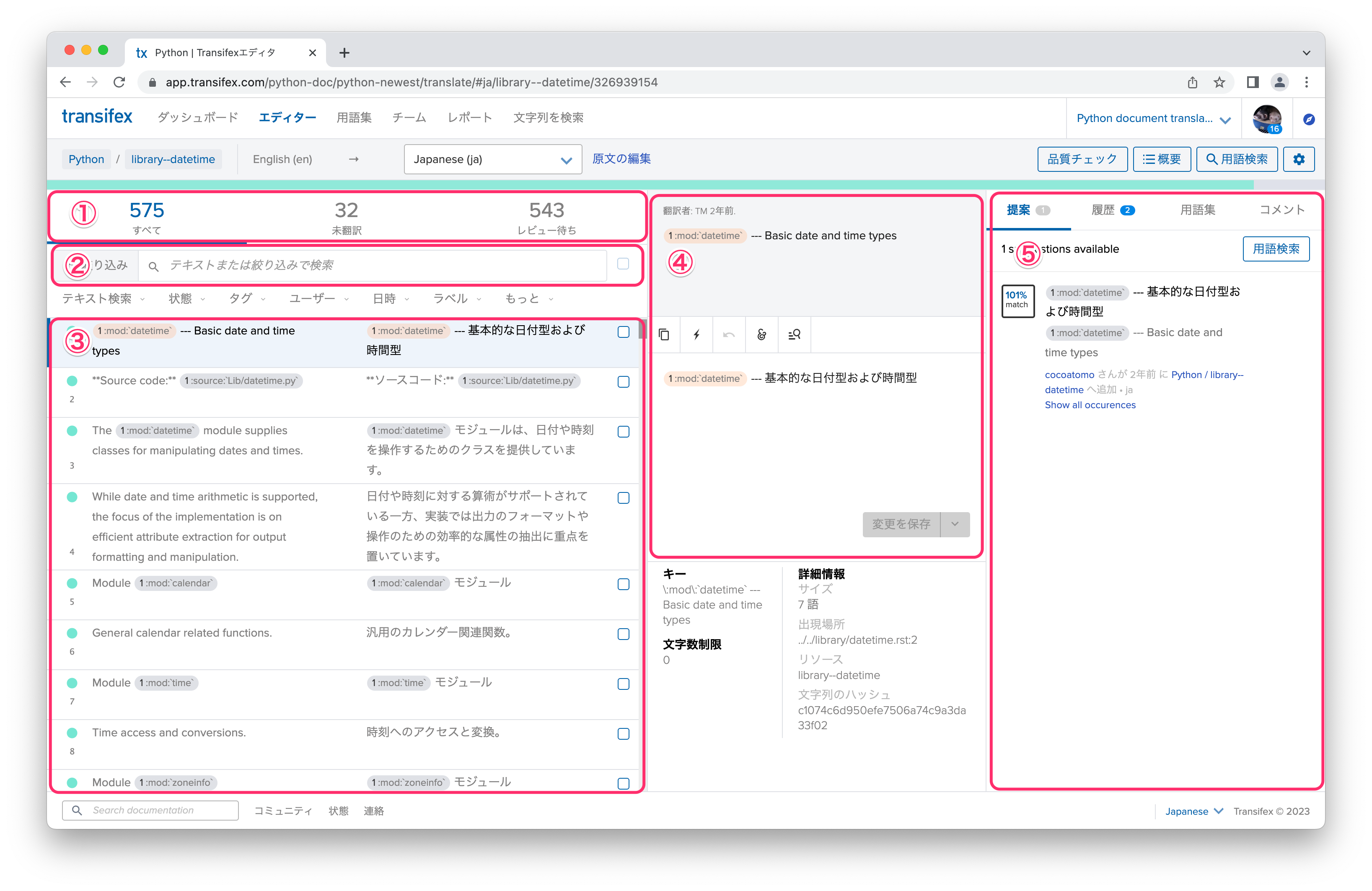 ここでは標準ライブラリのdatetimeのドキュメントを翻訳してみたいと思います。 検索ボックスに文字列を入力するとリソースを名前で絞り込めます。 「library--datetime」が対象のリソースなのでクリックします。