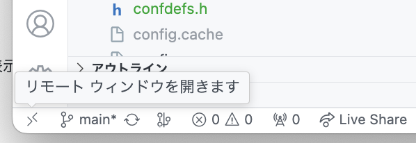Dev Containerを起動するには、左下の「リモートウィンドウを開く」をクリックします。