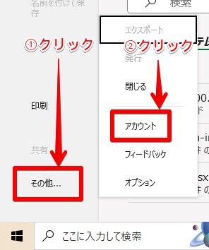 Excelを起動し、メニューの[ファイル]をクリックします。